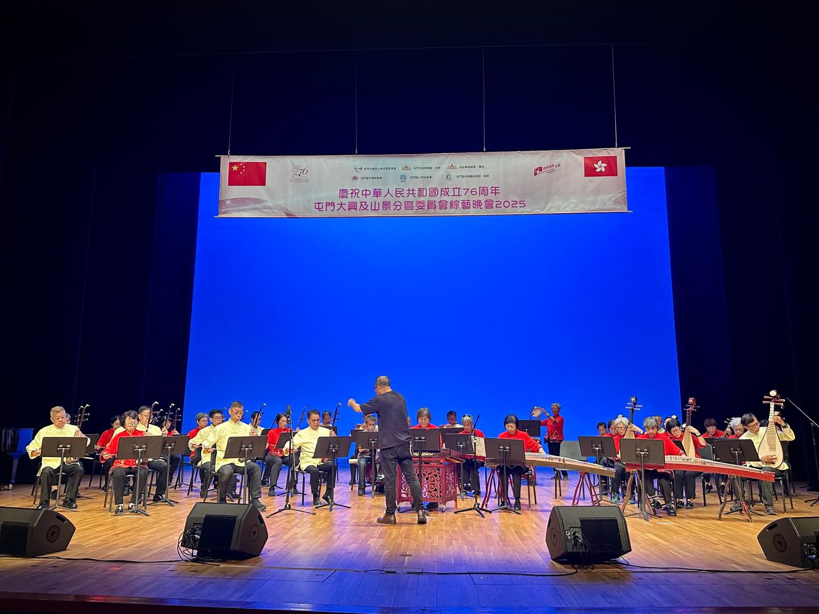 「聯網」35名學員受屯門民政事務處邀請參與中樂團表演,出席2025年9月26日假屯門大會堂演奏廳舉辦的綜藝晚會,與超過1000位聽眾一同慶祝中華人民共和國成立76周年,弘揚愛國精神。當中凝聚了不同文化的表演,展現屯門區多元文化與活力。「聯網」中樂團為晚會演奏柔情中帶點激昂旋律的《小城故事》和《高山青》,帶動現場觀眾一同拍掌,現場氣氛被音樂的力量牽動,與觀眾產生共鳴,更能推動「老有所為」的精神。