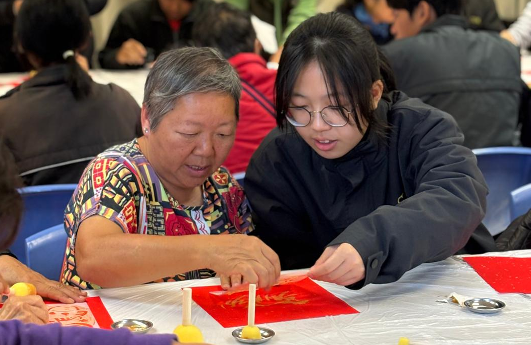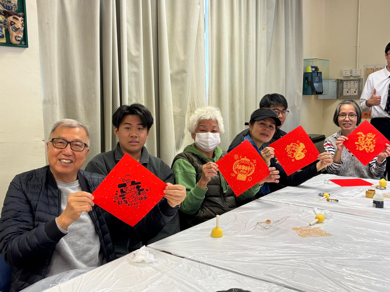 聯網與屯門馬登基金中學合辦之「長幼共融手工製作活動」,共25位中學生及32名長者一同參與,學生細心指導長者製作摺紙燈籠、揮春拓印等新年節慶飾物,並悉心安排豐富的互動遊戲,大家過了一個愉快的上午,樂也融融一起製作祝福「印」記????